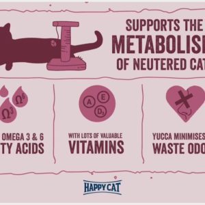 - حفظ وزن ایدهآل (با کاهش چربی و میزان مناسب فیبر، به گربههای عقیم کمک میکند وزن سالم خود را حفظ کنند.)