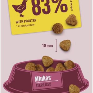 غذای خشک کامل و متعادل Happy Cat Minkas Sterilised Poultry به طور خاص برای گربههای عقیم طراحی شده است. محتوای کم چربی و میزان مناسب فیبر به حفظ وزن ایدهآل کمک میکند. این غذا با پروتئینهای حیوانی ارزشمند غنی شده و ۱۰۰٪ طبیعی و متعادل است. دارای ویتامینها و مواد معدنی لازم برای پشتیبانی از سیستم ایمنی گربه است. غذای خوشمزهی استرلایز مینکاس هپی کت سرشار از امگا-۳ و امگا-۶ است تا به سلامت پوست و پوشش گربه کمک کند. این محصول فاقد طعمدهندهها و نگهدارندههای مصنوعی است.