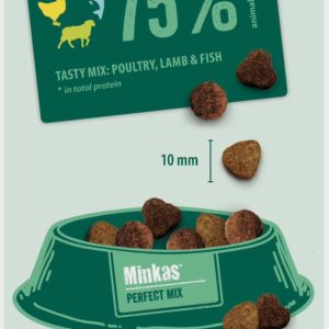 Minkas Perfect Mix یک غذای کامل و بسیار متعادل برای گربههای بالغ است. این غذا شامل مرغ خوش طعم، گوشت بره عالی و ماهی لذیذ است که به رژیم غذایی گربه شما تنوع و هیجان میبخشد. ترکیب خوشمزهی کیبلها به خوبی توسط گربهها پذیرفته شده و تحمل میشود. فرمولاسیون این غذا با درصد بالایی از پروتئین حیوانی با ارزش، کاملاً طبیعی و متعادل است. این غذای خشک خوشمزه سرشار از ویتامینها و مواد معدنی بوده و سیستم ایمنی گربه را تقویت میکند. ترکیبات این غذا به طور طبیعی بدون طعمدهندهها و نگهدارندههای مصنوعی هستند.
