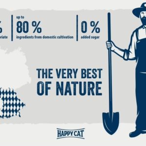 - رژیم غذایی متعادل (ترکیب متعادل پروتئینها از منابع حیوانی با کیفیت (مرغ، بره و ماهی) نیازهای تغذیهای گربه بالغ را تأمین میکند.)